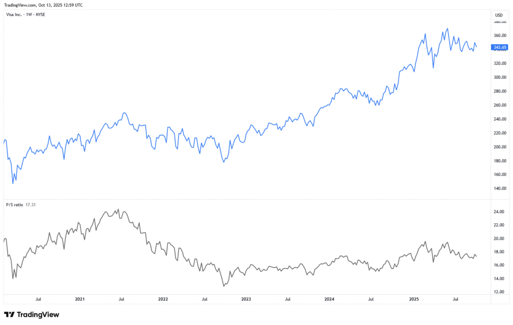 Ein Investor erwägt eine Beteiligung an einem Zahlungsdienstleister und vergleicht Visa und PayPal. Mithilfe des Kurs-Umsatz-Verhältnisses (KUV) möchte er einschätzen, welches Unternehmen im Verhältnis zu seiner Marktkapitalisierung mehr Umsatz erzielt.