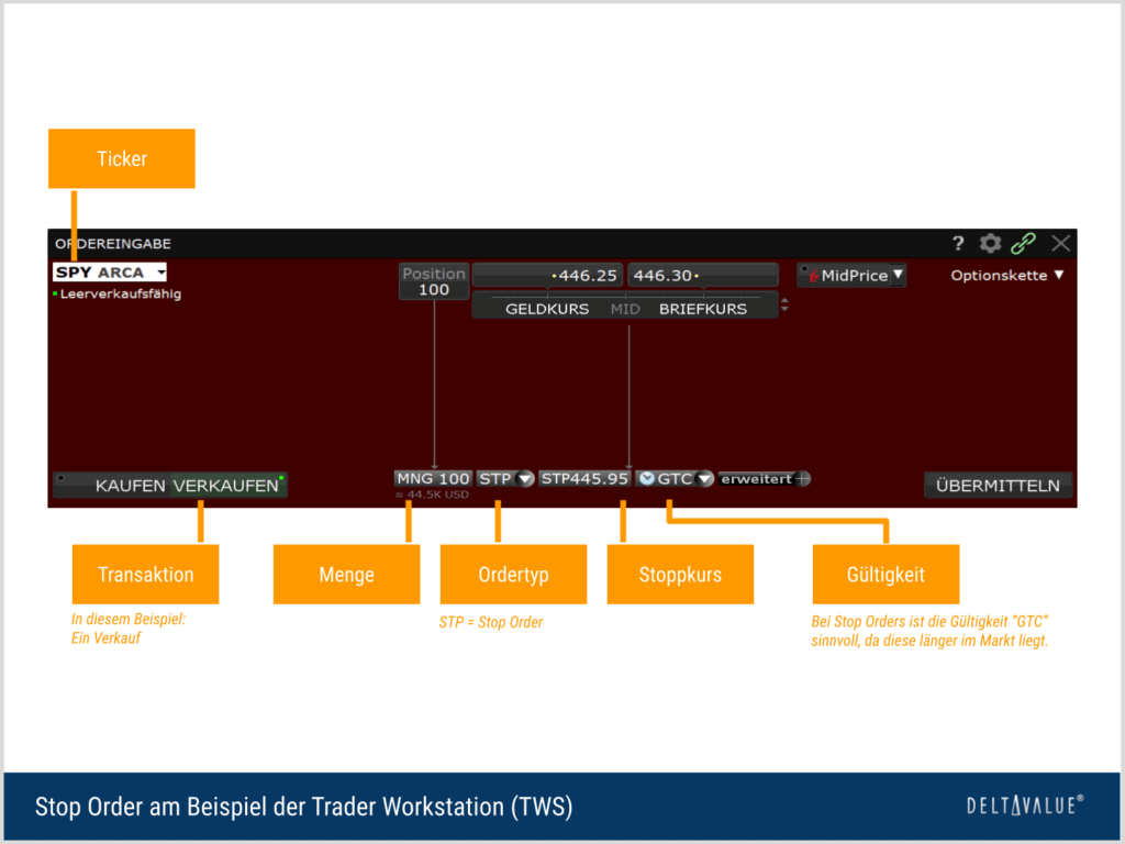 Welche Orderart als Stop-Loss verwendet wird, hängt von der Position ab: